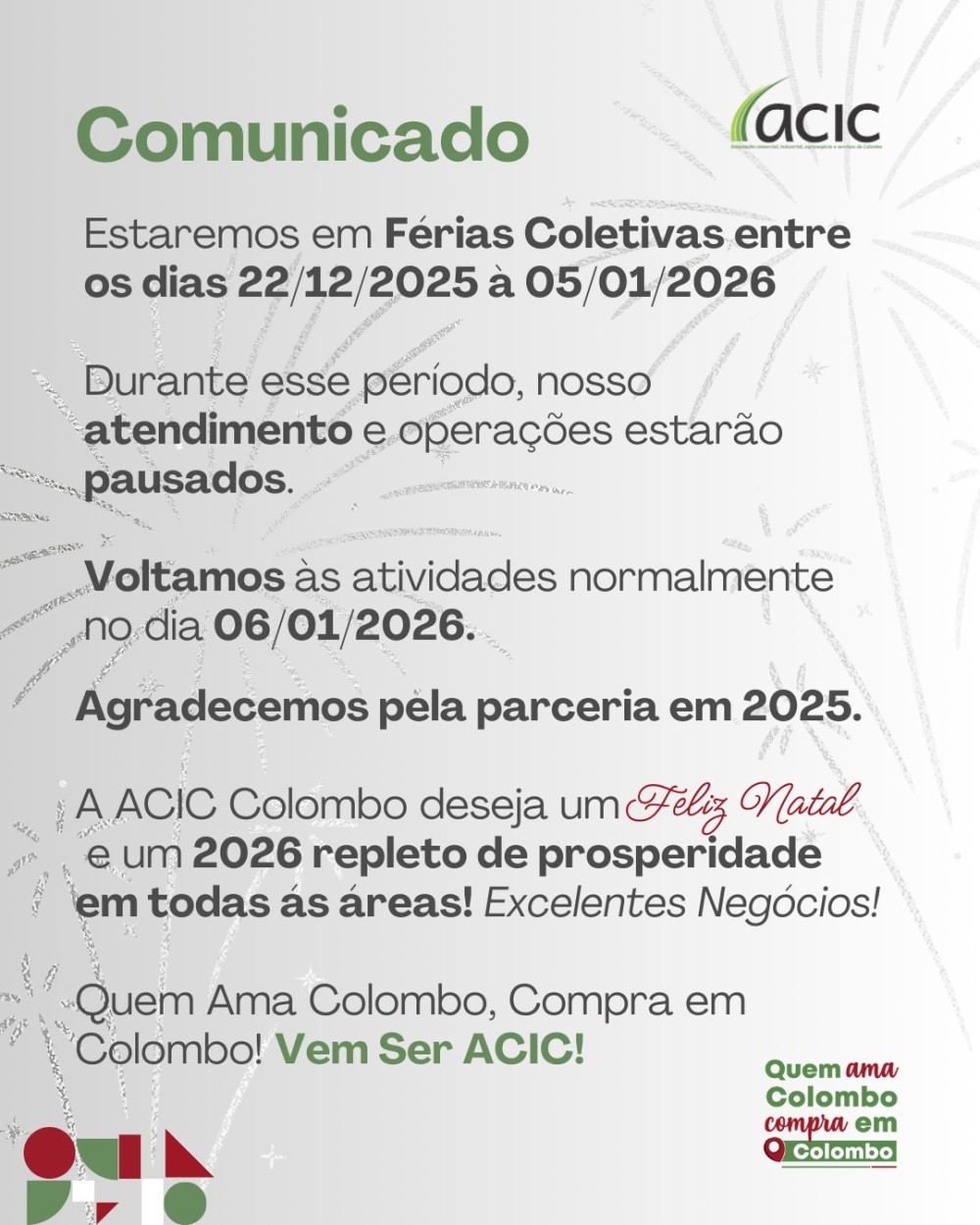 Comunicado de Férias Coletivas